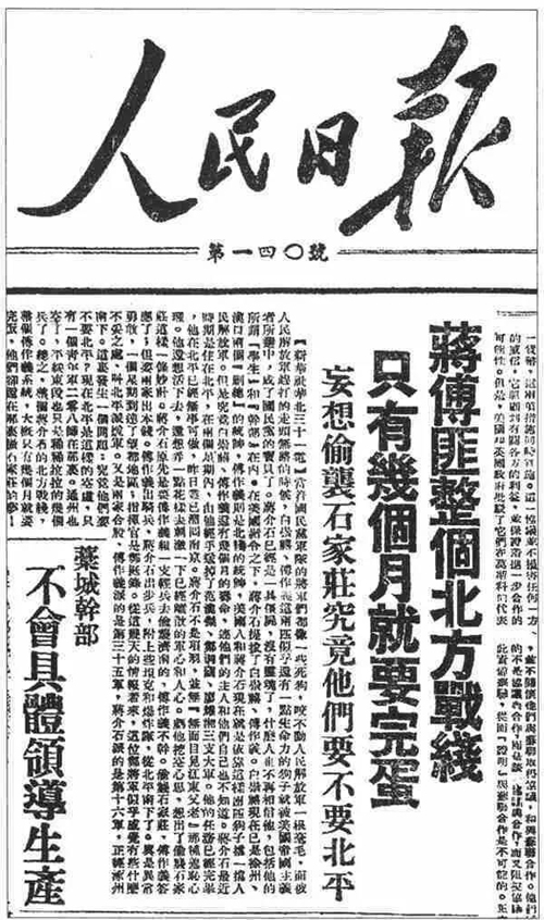 10月28日,毛泽东撰写了第二条新华社电讯稿以《华北各首长号召保石沿线人民准备迎击匪军进扰》为题,警告敌军,如敢冒险,必被歼灭,刊登在《人民日报》头版。