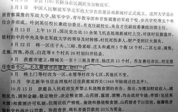 据《获鹿县志》记载,1948年9月,获鹿市建立,辖城关一至十三街及曹杨庄15个村,乔友善任市长,刘宝恩任市委书记,不久撤销市的建制。