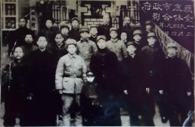 这是一张老照片,上面写着“获鹿市政府全体合影,一九四九年二月四日”。