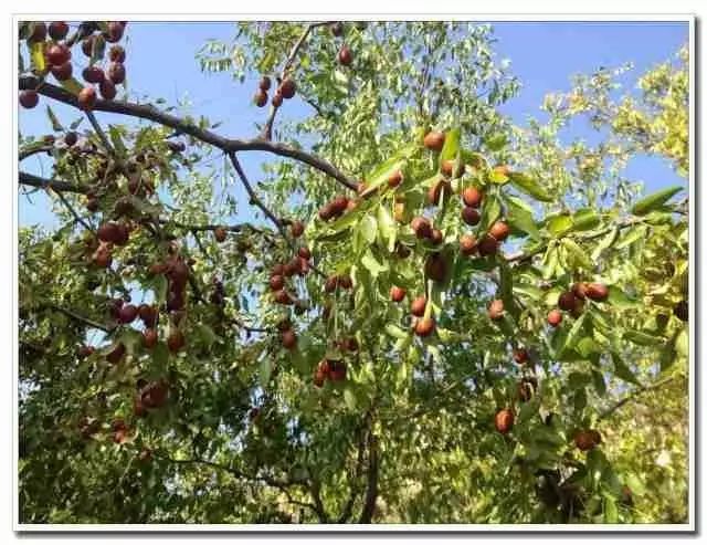 山沟内多枣树、杏树。秋天的枣树,绿中染红,压满枝头,伸手摘下,入口脆甜