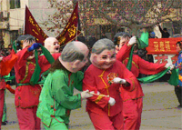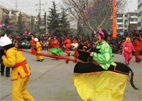 多则十几人,少则八九人,头戴面具,为男女老少,各行各业,以秧歌为主。大头舞主要分布在申后、大河、获鹿镇八街等村。