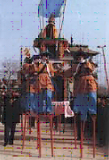假人背真人,人物形象多为才子佳人,男女丑各一人,以秧歌舞为主。主要由获鹿镇杨庄村表演。