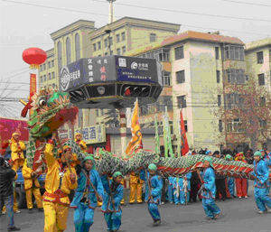 鹿泉市的舞龙设两条龙,一条水龙,一条火龙,水龙多为青绿色,火龙多为红黄色,每条龙一般用7~9人,绣球一个,旗队若干。有舞龙的村主要是申后、东土门、城关六街、小毕村、北白砂。北白砂村舞龙以其历史悠久、龙身长、套路多、阵容大堪称一绝,闻名遐尔。 该村舞龙据说始于乾隆四年(1739年),相传清朝乾隆年间上正逢太平盛世、国泰民安,乾隆帝圣驾到平山境内察视北武当山行宫新觉寺,途经宝地北白砂村,此时正值当地百姓欢庆丰收,见到皇上驾临,便以舞龙相迎。乾隆帝看到巨龙翻飞,变化万千,似腾云驾雾,活龙再现,顿时龙颜大悦,当即赐给“龙会”绣龙马褂一件,并亲赐四个大字“腾云龙会”以示表彰,可惜年久和兵荒马乱,此物已不复存在。经皇帝赐物后北白砂龙会名声大震,每逢北武当山庙会和过年过节必去舞龙助兴,迄今二百余年。 改革开放以来,富裕起来的北白砂农民组织了“腾云舞龙队”,他们继承前辈舞龙技艺和风格,又多次学习外地技艺并经专家指导,对舞龙的套路、鼓点、服装、造型加以充实完善,其阵容更加宏大多变,舞姿优美,古今兼容,形成了独特地方风格的民间花会。 北白砂的舞龙,龙长 1995年8月参加第五届吴桥国际杂技艺术节,“腾云舞龙队”第一次走向世界艺术殿堂。1996年,“腾云舞龙队”被中国文化部定为进京表演队,名声大震,随后又在中国北方旅游交易会开幕式上进行表演。1997年6月参加中国天津“麒麟杯”龙狮邀请赛,荣获最佳表演奖。1997年8月参加中国北京第一届舞龙艺术节,荣获优胜奖。 北白砂“腾云舞龙队”花会曾被中央电视台、北京电视台、天津电视台、河北电视台、《中国文化报》、《河北日报》、《河北文艺报》、《石家庄日报》等多家新闻单位报道,其名声享誉中华大地。